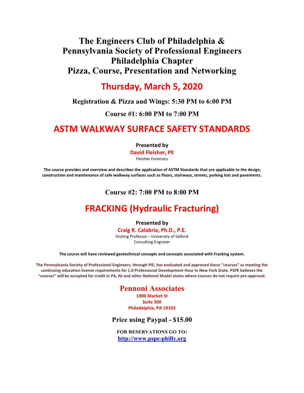 ECP & PSPE - FRACKING (Hydraulic Fracturing) & ASTM WALKWAY SURFACE SAFETY STANDARDS (1 PDH)