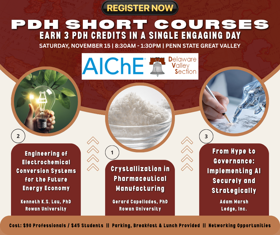 We welcome you to attend our upcoming PDH short courses day, achieving 3 PDH credits on a single Saturday. Featuring distinguished speakers from both academia and industry, this event is a great opportunity to connect with other professionals and students in our area.Breakfast and lunch includedwith registration.